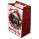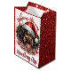 Faites de vos vacances un cadeau inoubliable avec ce luxueux sac cadeau avec une représentation époustouflante d'une femme afro-américaine glamour exubérant une élégance festive. Décorée d’un chapeau de Père Noël rouge étincelant, de bijoux éblouissants et de verres de gloire surdimensionnés, elle est encadrée par des floraux et des baies rouges et argentés. 🎁 Parfait pour ajouter une touche audacieuse et élégante à vos célébrations de Noël et à vos moments de cadeaux ! ©2024 Miss Sassy Party Designs