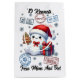 A vibrant Santa sack adorned with a whimsical holiday snowman featuring a friendly ghost, a Christmas gift, and a gingerbread cookie. Snowflakes softly fall around, creating a joyful atmosphere that captures the spirit of the holiday season.