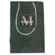 Élégante et traditionnelle impression géométrique bronzée sur arrière - plan vert foncé. La Fête des pères joyeuse est écrite dans une police serif moderne sur un rectangle vert foncé bordé de bronze. Un monogramme beige au nom blanc est à l'avant du sac.