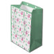 Sac Cadeau Moyen Flamant rose mignon Fleurs tropicales Motif feuill