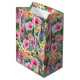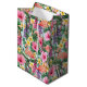 Un beau motif tropical de fleurs roses et jaunes avec un sac cadeau moyen de flamants roses pour les anniversaires ou les douches