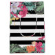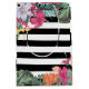 Sac Cadeau Moyen Fleurs Floral Tropical Feuilles Rayures Noir Blanc