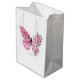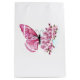 Flower arrangement of pink butterfly with rose Japanese cherry blossoms on white background.
