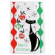 Design inspiré du milieu du siècle avec une touche rétro avec des chats noirs de style atomique, des boules de Noël vertes et rouges et des étoiles noires sur un arrière - plan à motifs rouge, vert et blanc. Un design personnalisable pour personnaliser avec votre propre texte, images et idées. Image d'art numérique originale créée par Jess Perry sur QuirkyChic Retro.