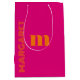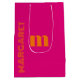 fuchsia and orange custom initial name modern medium gift bag ,Add a bold pop of color to your gift-giving with this fuchsia and orange custom initial name gift bag. Featuring a modern, eye-catching design, this medium-sized bag is personalized with your chosen initial and name in a stylish script, making every gift feel unique and thoughtfully presented.