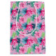Sac Cadeau Moyen Fuchsia Vert Bleu Floral Tropical Anniversaire