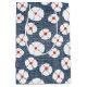 Fleurs blanches aux centres rouges sur tissu en jean bleu.