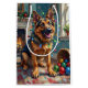 Bring some humor to the holidays with this playful German Shepherd design! This vibrant illustration captures the moment of a festive 'dog disaster,' featuring a lovable GSD with a string of colorful Christmas lights adorably tangled around its head. A perfect design for anyone who knows the chaos and joy of owning a large dog during the holiday season. Ideal for fun ornaments, cheeky Christmas apparel, and humorous gift tags. Share a laugh this Christmas with this mischievous dog art!