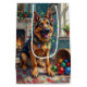 Sac Cadeau Moyen Funny German Shepherd Tangled in Christmas Lights