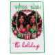 Glam de Noël féminin afro-américain élégant - Vibes de vacances rose et vert. Célébrez la saison des Fêtes avec cette magnifique oeuvre d'art mettant en vedette des femmes afro-américaines glamour dégageant un charme festif dans un thème de Noël rose et vert vibrant. Entouré d'une couronne de Noël aux ornements étincelants, de cadeaux superbement emballés et d'une verdure luxuriante, ce design allie à merveille élégance et joie de vivre.