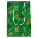 Sac Cadeau Moyen Gold and Green Christmas Poinsettia Flowers