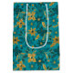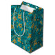 Sac Cadeau Moyen Gold and Teal Blue Christmas Poinsettia Flowers