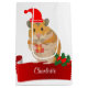 Ce joli sac cadeau de Noël personnalisé présente un joli Hamster doré moelleux tenant un cadeau et portant un chapeau de Père Noël contre un arrière - plan blanc avec Holly. Le nom peut être changé. Parfait pour les amateurs de Hamster de tous âges.