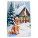 Share warm holiday cheer with this festive Christmas card featuring a Golden Retriever wearing a Santa hat beside a cozy snow-covered wooden cabin. Pine garlands, glowing lights, and gentle snowfall create a soft watercolor winter scene perfect for dog lovers. The blank interior provides plenty of space for personalized messages, making it ideal for gifting, seasonal mailing, and Golden Retriever–themed stationery collections.