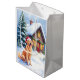 Sac Cadeau Moyen Golden Retriever Rustic Cabin Santa Hat Christmas