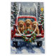 Bring cheerful, fluffy charm to your holiday season with this adorable Goldendoodle Christmas design! This festive scene features three cute, curly-coated Goldendoodles (a mix of Golden Retriever and Poodle) sitting happily in the back of a classic red pickup truck, nestled in a picturesque snowy winter forest. The vintage truck is adorned with a vibrant Christmas wreath, twinkling with red and gold ornaments and warm, glowing lights. Soft snowflakes gently fall, enhancing the winter wonderland effect. A decorated Christmas tree in the background completes this heartwarming picture, making it an ideal Christmas gift for any Goldendoodle owner, dog lover, or admirer of festive and lovable hybrid dog art. This design perfectly captures the joyful spirit of the holidays.