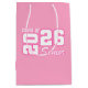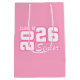 This gift bag is for the Grad in your life, shown in pink with a class of print.