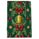 Sac Cadeau Moyen Green Pattern Gold Candle Poinsettia Flower