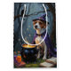 Entrez dans une soirée magique d'Halloween avec cette peinture à l'huile fantaisie représentant un adorable petit vêtu d'un mini manteau de sorcière, assis à côté d'un chaudron bouillonnant dans une forêt ombragée. Entourée de potions brillantes, de vieux livres d'orthographe et d'étincelles magiques scintillantes, la scène est remplie de mystère et de charme. De riches textures peintes et de profondes teintes d'Halloween créent une atmosphère chaleureuse et enchantée, idéale pour les amateurs de saison éffrayante.