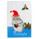 Ce joli sac cadeau de Noël personnalisé comprend un mignon hamster gris et blanc moelleux tenant un cadeau et portant un chapeau de Père Noël contre un arrière - plan blanc avec Holly. Le nom peut être changé. Parfait pour les amateurs de Hamster de tous âges.