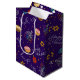 Un Sac Cadeau Coloré Violet Hanoukka De Taille Moyenne Conçu Avec Typographie, Menorah, Dreidel Et Étoile De David
