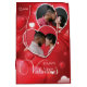 Happy Valentine's 3 Photo Collage Romantique Coeurs rouges. Partagez deux de vos photos avec HEUREUSE SAINTE-VALENTIN sur cette carte avec des coeurs rouges dessinés dans des aquarelles et le mot HAPPY VALENTINE'S en noir et bordeaux sur un arrière - plan rouge pâle avec un message d'amour romantique à l'arrière est une citation pour vous de garder ou changer votre propre et votre nom.