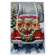 Bring cheerful, fluffy charm to your holiday season with this adorable Havanese Christmas design! This festive scene features three cute, long-haired Havanese dogs sitting happily in the back of a classic red pickup truck, nestled in a picturesque snowy winter forest. The vintage truck is adorned with a vibrant Christmas wreath, twinkling with red and gold ornaments and warm, glowing lights. Soft snowflakes gently fall, enhancing the winter wonderland effect. A decorated Christmas tree in the background completes this heartwarming picture, making it an ideal Christmas gift for any Havanese owner, dog lover, or admirer of festive and beloved dog art. This design perfectly captures the joyful spirit of the holidays.