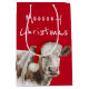 Sac Cadeau Moyen Hereford Cow avec Père Noël Casquette sur rouge