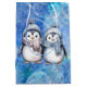 Sac Cadeau Moyen Hiver Bleu Aquarelle Pingouins Écarts Casquette