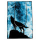 Abstraite fumée blanche et bleue neigeuse d'hiver géométrique avec silhouette de loup noir.