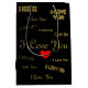 Élégant Je t'aime écrit en or avec un coeur rouge. Les clients ont la possibilité de déplacer ou de redimensionner les mots. L'arrière - plan noir peut être modifié dans les options de conception. par celeste@kkhoncepts.com