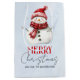 Joli bonhomme de neige et neige vacances de Noël Moyen Cadeau Sac. Ce magnifique design de vacances présente un sympathique bonhomme de neige habillé d'un foulard et d'un casquette rouge vif ainsi que le texte "Mery Christmas" parfaitement positionné sur un arrière - plan bleu doux.