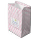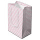 Remerciez vos invités d'être venus avec ces jolis sacs de faveur rose présentant un fond imprimé rayé rose et blanc mignon et une bordure ondulée. La couleur contrastée des rayures (actuellement un rose moyen) peut être personnalisée par vous, ainsi que toutes les couleurs et positions de texte. Vous pouvez également ajouter ou supprimer des zones de texte dans l'outil de conception.