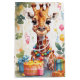 Girafe de dessin animé souriant avec gâteau et cadeaux. Un design idéal pour les cadeaux pour les enfants de tout âge.
