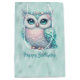 Sac Cadeau Moyen Joyeux Anniversaire Chouette Turquoise sur Shiny A