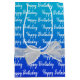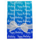 Joyeux texte d'anniversaire et arc blanc transparent sur bleu brillant à arrière - plan dégradé d'aqua. Le texte est modifiable ou peut être supprimé.