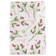 Un sac cadeau avec un cadre carré avec une bordure rose qui dit "Joyeux anniversaire" écrit dans une police tendance avec un soleil jaune au-dessus et une jolie fleur rose. La toile de fond est un motif sans couture avec des fleurs sauvages roses dessinés à la main avec de longues tiges vertes et des feuilles sur un arrière - plan blanc en coquille d'oeuf. Des cercles roses et des sprigs décorent également le design. Design agréable et estival.