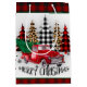 Sac Cadeau Moyen Joyeux camion de Noël et arbres
