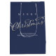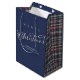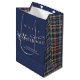 Sac Cadeau Moyen Joyeux Noël Calligraphie Script Navy Blue Plaid