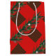 Sac Moyen Cadeau Personnalisé (Personnalisé) - Joyeux Noël et Bonne Année ! Sac Cadeau Moyen XMAS orné de symboles magiques de Noël, motif d'éléments de cadeaux de vacances d'hiver, bonhomme de neige, arbre de Noël, boule de Noël, renne, flocons de neige, étoiles de Noël et autres personnages festifs. Couronne de baie de Noël rustique en brindilles, décoration de guirlande, sur ornements carrés à carreaux de Noël, motif écossais (couleurs vert et rouge). Conception graphique originale tendance. Artisanat et Fournitures de Fête > Fournitures d'emballage cadeau > Sacs Cadeau. Décoration de vacances d'hiver pour cadeaux. Conception de Sac Moyen avec monogramme et modèle de texte. Personnalisez-les en ajoutant un nom. Décoration graphique sur