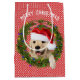 Sac Cadeau Moyen Joyeux Noël Golden Retriever en pois