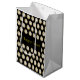Sac cadeau élégant noir, blanc et jaune coeur d'amour Pâques OEuf à motif sur arrière - plan noir, avec la typographie populaire de police "Happy Pâques!". Une touche de classe et de fête pendant que vous échangez des cadeaux avec votre famille et vos amis pendant les fêtes de Pâques.