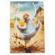Joyeux poulet dansant dans la saleté avec soleil brillant le matin et grange de ferme pour l'anniversaire. Le texte peut être modifié ou supprimé.