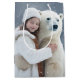 Une jeune fille embrasse un ours polaire avec une couverture de flocon de neige. Les flocons de neige peuvent être supprimés.