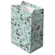Ce sac cadeau de Pâques Rabbit et Oeufs Blue Medium pour enfants présente des illustrations manuscrites de lapins, de feuilles et de fleurs contre un arrière - plan bleu pastel classique. Personnalisez avec le nom de l'enfant.