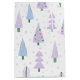 Sac cadeau de Noël moderne avec un motif d'arbres de Noël abstraits dessinés à la main et d'arbres forestiers dans la neige hivernale en lavande et couleurs bleues sur le blanc. ASSISTANCE : Pour obtenir de l'aide sur la modification de la conception, le transfert de la conception à un autre produit ou si vous souhaitez coordonner des éléments, contactez le concepteur AVANT DE COMMANDER via l'onglet MESSAGE Conversation Zazzle ci-dessous ou envoyez un courriel à makeitaboutyoustore@gmail.com.