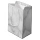 Ajoutez une touche personnelle à votre mariage avec un sac cadeau pour groomsmen personnalisé. Ce sac cadeau contient le nom du marionnettiste personnalisé en style de police de script classique gris avec des détails mariages en style de police serif classique gris et monogramme en style de police serif classique gris clair en arrière - plan, sur arrière - plan en marbre blanc. Parfait aussi pour le meilleur homme, père de la mariée, porteur de bague et plus.