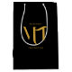 Sac Cadeau Moyen Lettres d'initiales de monogramme noir et or éléga
