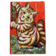 Le chat de Noël de Louis Wain décorant un arbre dans cet art vintage coloré.