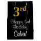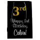 Ce design élégant, luxueux et élégant à thème d'anniversaire comprend un grand numéro ordinal "3ème" avec un look d'inspiration or imitation, plus le message de voeux d'anniversaire "Happy 3ème anniversaire", et un nom de destinataire personnalisable dans une police de style script. L'arrière - plan est noir de couleur. Un giftbag à thème d’anniversaire comme celui-ci peut être utilisé pour donner un cadeau ou un cadeau pour célébrer le 3e anniversaire de quelqu’un. [~Z0000514]
